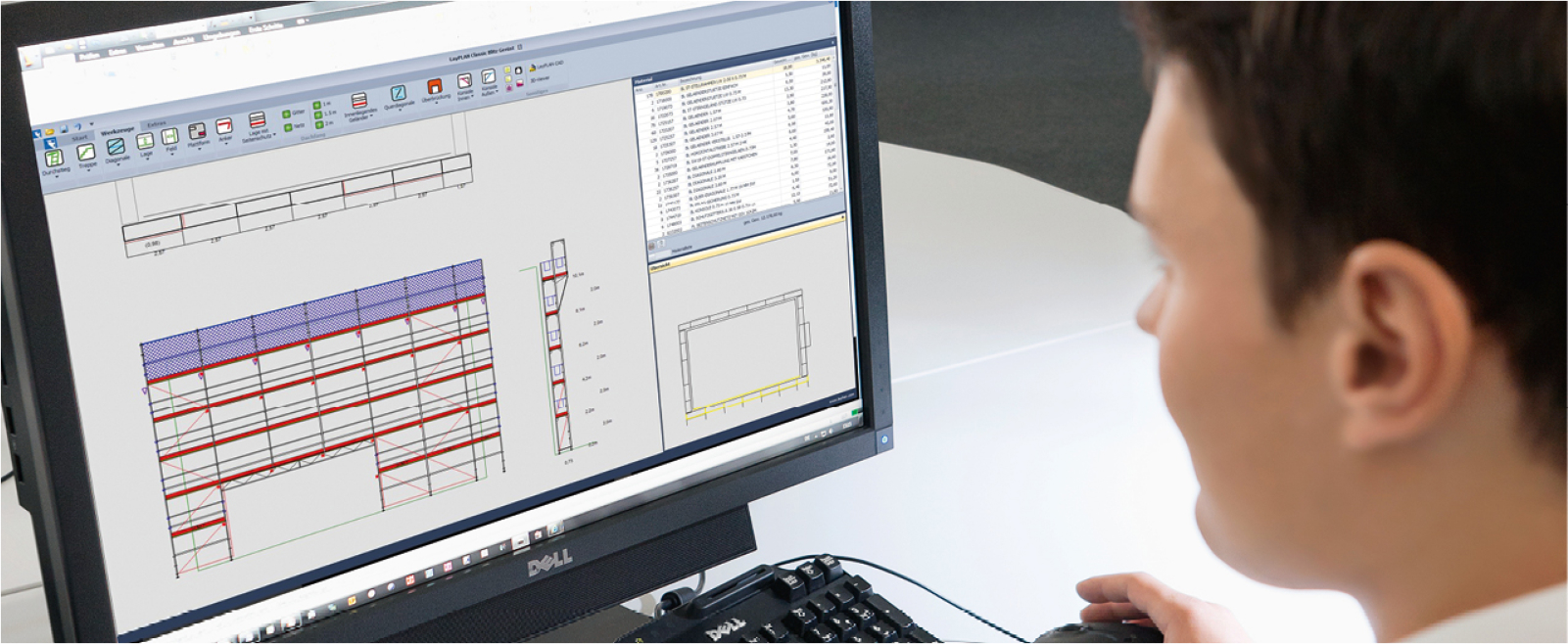 Dzięki modułom Layplan Classic stworzonym dla Systemu rusztowań Allround i Blitz, indywidualne rozwiązania rusztowań mogą być prosto i łatwo konfigurowane: niezależnie od tego, czy chodzi o rusztowania obiektów cylindrycznych lub fasadowe wykonane z systemu Blitz, rusztowania przestrzenne i wolnostojące wieże wykonane z systemu Allround, czy też konstrukcje z tymczasowymi dachami. Po wprowadzeniu wymiarów i wariantu montażowego, LayPLAN