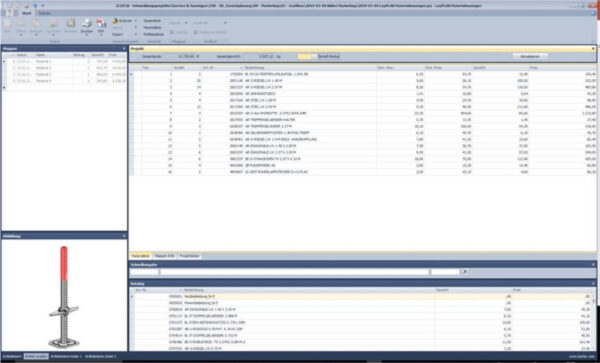 LayPLAN MATERIALMANAGER jest zawarty zarówno w LayPLAN CLASSIC, jak i w LayPLAN CAD. Listy materiałowe mogą być automatycznie generowane z obu programów i przenoszone do LAYPLANMATERIALMANAGER z możliwością edycji. Można tworzyć proste listy materiałowe lub na przykład podzielić kilka sekcji konstrukcyjnych na różne listy, tak aby ceny i wagi mogły być rozpatrywane oddzielnie.